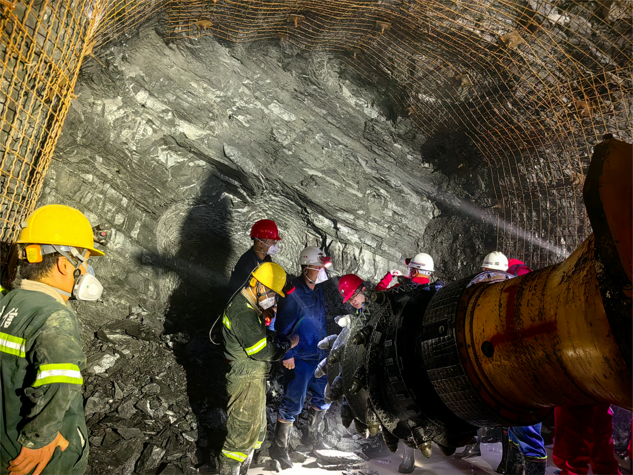 在综掘机试验期间,面临着井下负坡掘进工作面存有积水、截齿磨损更换频率高、通风效果待改善、支护效率待提高、操作工人不熟练等诸多严峻挑战,公司领导班子带领全体员工齐心协力,深入施工现场认真逐一研讨解决办法,积极采取有效措施,凭借着顽强的毅力、高度的责任感、精益求精的工匠精神,使掘进效率由最初的2米/天逐步提升至最高9.4米/天,安全高效地完成了综掘机试验。